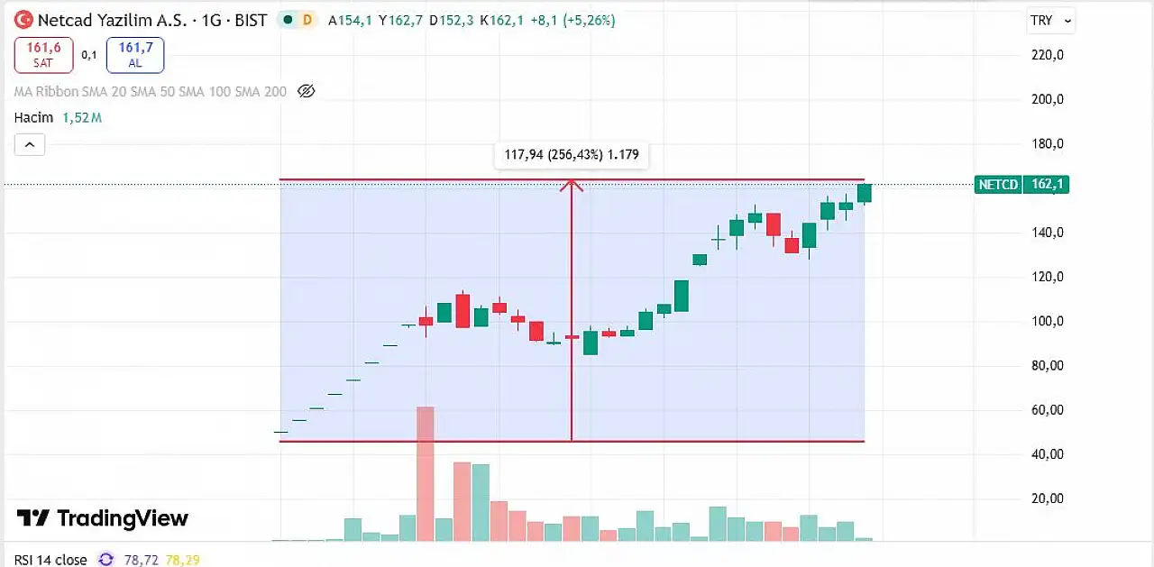 Netcad Yazılım’ın 46 TL fiyatla halka arz edildiğini söylemiştik. Şirketin halka arz edilen payları, 24 Mart 2026 tarihli seansta 163,90 TL’ye kadar yükseldi. Bu durumda da NETCD hisseleri, halka arz fiyatının üzerine yüzde 256 değerlenmiş oldu.